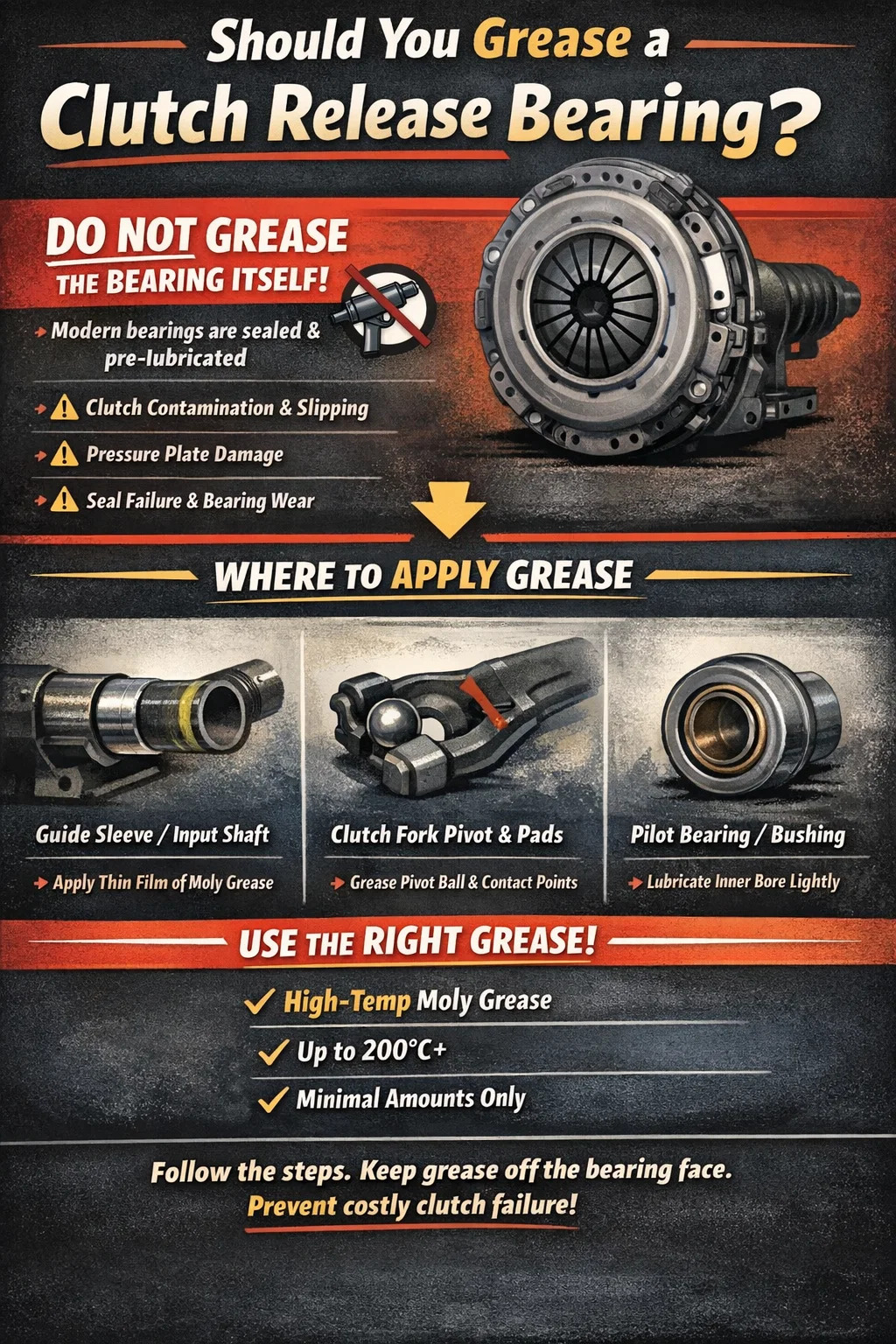 Following these rules will give a clutch release bearing the best possible service life, ensure smooth and consistent clutch operation, and avoid the costly mistakes that send a perfectly good new clutch straight to the bin.