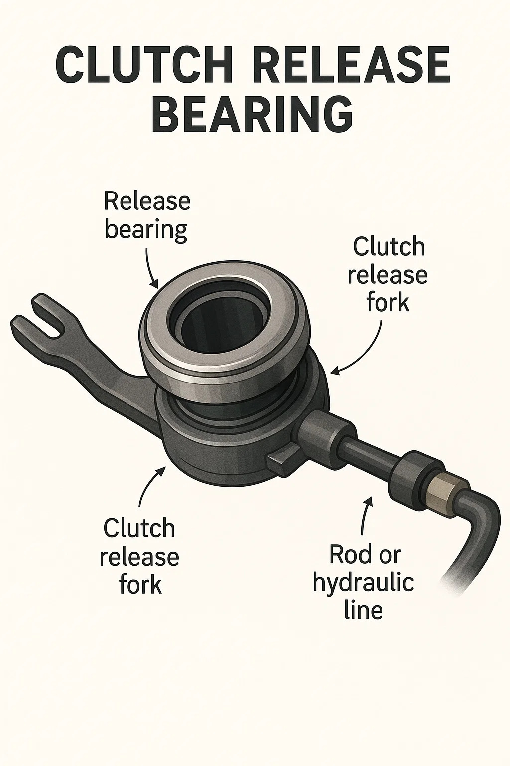 The clutch release bearing, also called the release bearing, is part of the clutch system. Its main task is to help separate the clutch plate and pressure plate when the driver presses the clutch pedal. This disconnects the engine from the transmission, allowing the driver to shift gears easily without causing the car to jerk or stall.